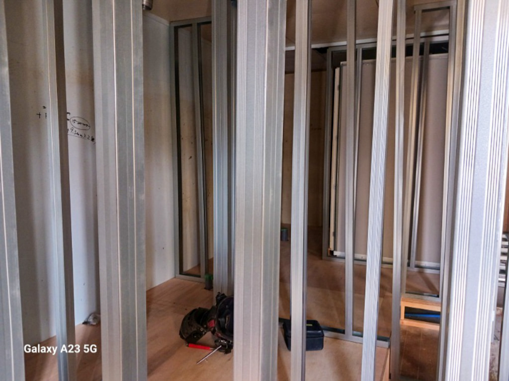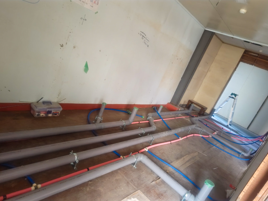 さらにシャワールームやトイレに加え、畳があるスタッフルームやトレーニングルームもどんどん出来上がってきています。